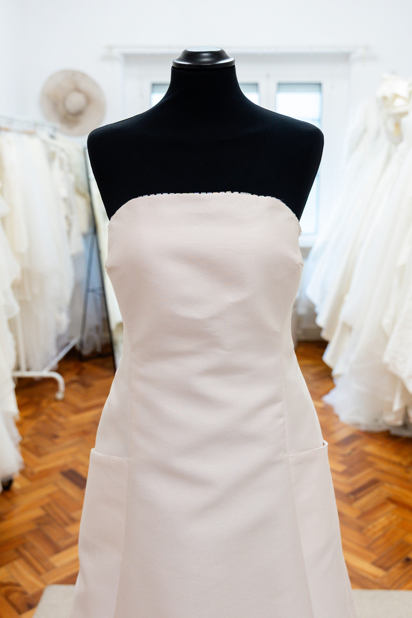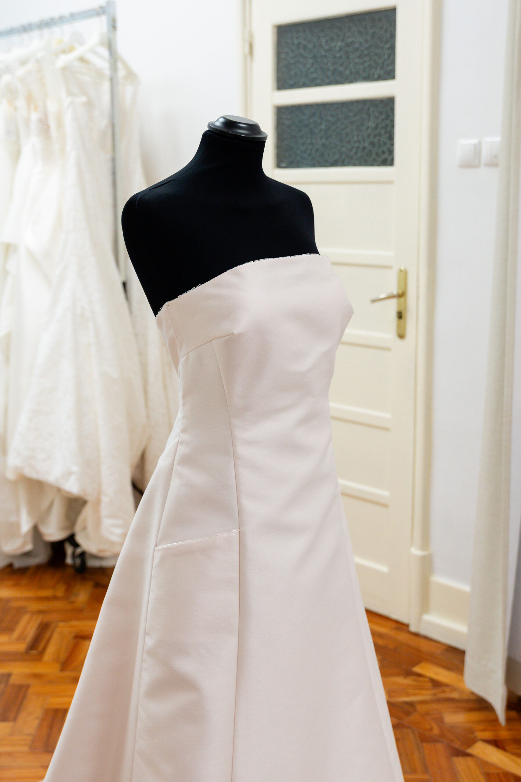 AGENDAR VISITAVestido de cerimónia ou de noiva, em cor rosa suave com bolsos frontais. Vestido ao estilo do início anos 2000, com a possibilidade de alterar decore reto para coração, personaliza ao teu gosto apenas com algumas alterações! O vestido tem também uma cauda curta o que permite muita versatilidade. Um toque de brilho no tecido e nas missangas destacam este vestido fora do comum!